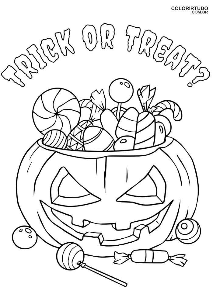 Halloween Malvorlagen Kürbiskopf Korb Süßes oder Saures