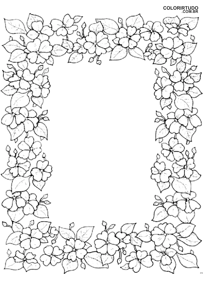 Desenho de Flor para colorir moldura de flores e folhas para imprimir