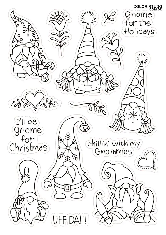 Desenho de Natal para colorir gnomos duendes para imprimir