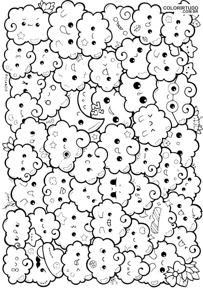 Desenho Para Colorir Kawaii Nuvesn Fofas