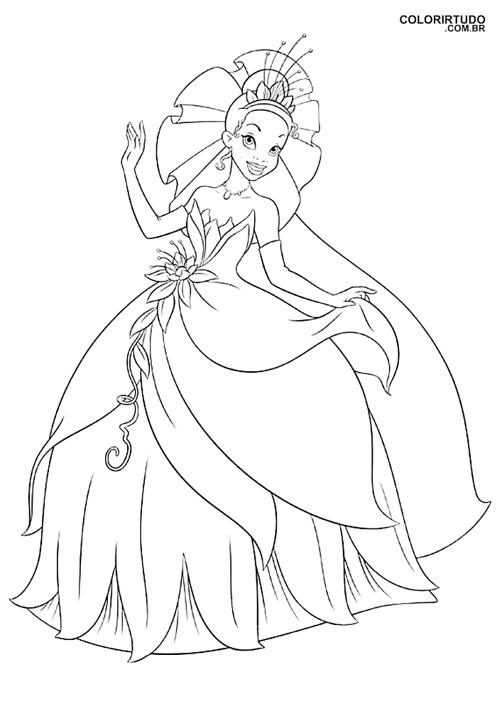 Dibujos para colorear de la Princesa Tiana y el Sapo