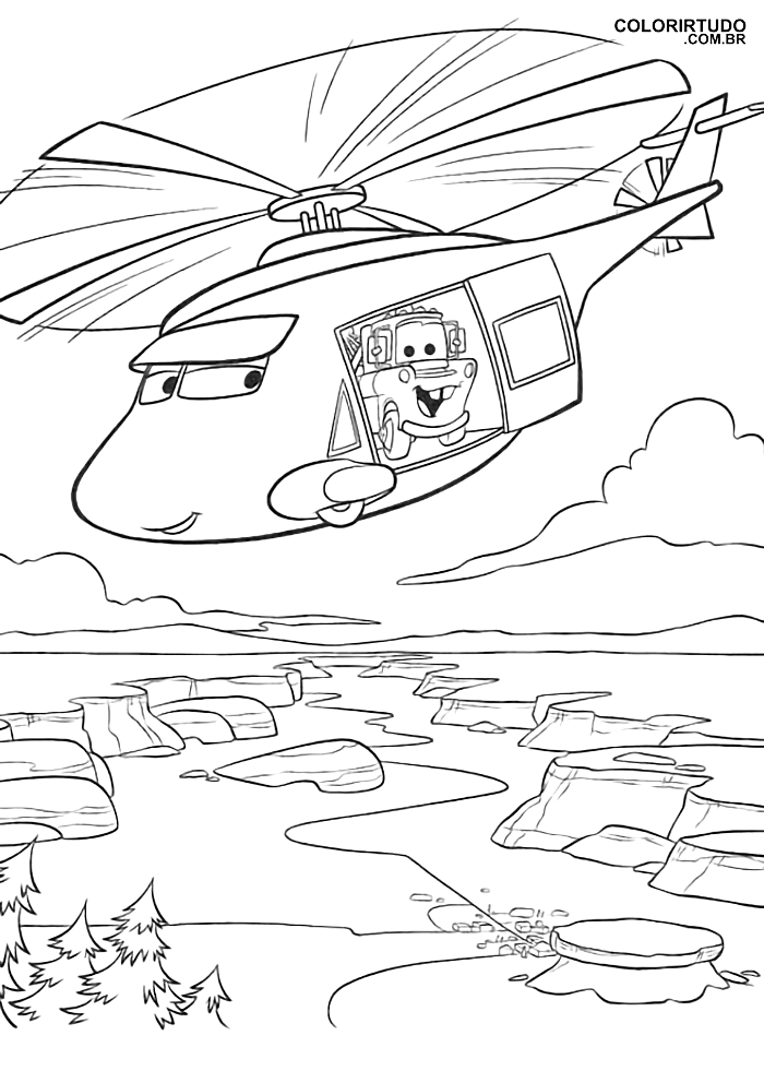 Páginas para colorear de Cars de Disney: Matt montando un helicóptero