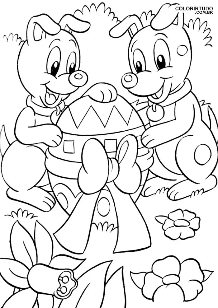 Hogar - PAGINAS PARA COLOREAR - Página para colorear de Pascua de cachorros que ganan un huevo de Pascua con un lazo para imprimir