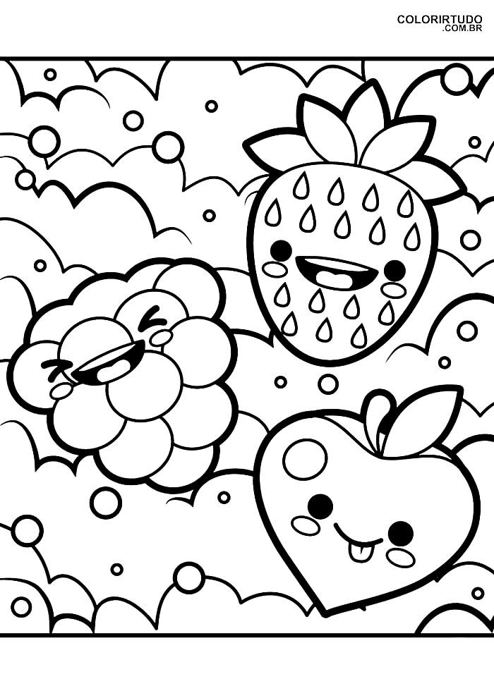 Dibujos Kawaii para colorear alimentos e imprimir frutas