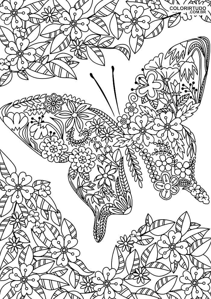 Dibujos para colorear de rosas y mariposas