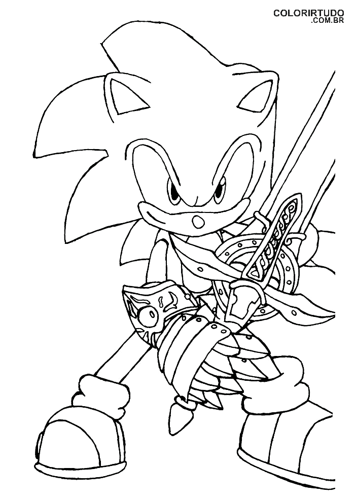 Página para colorear de Sonic sosteniendo una espada para imprimir