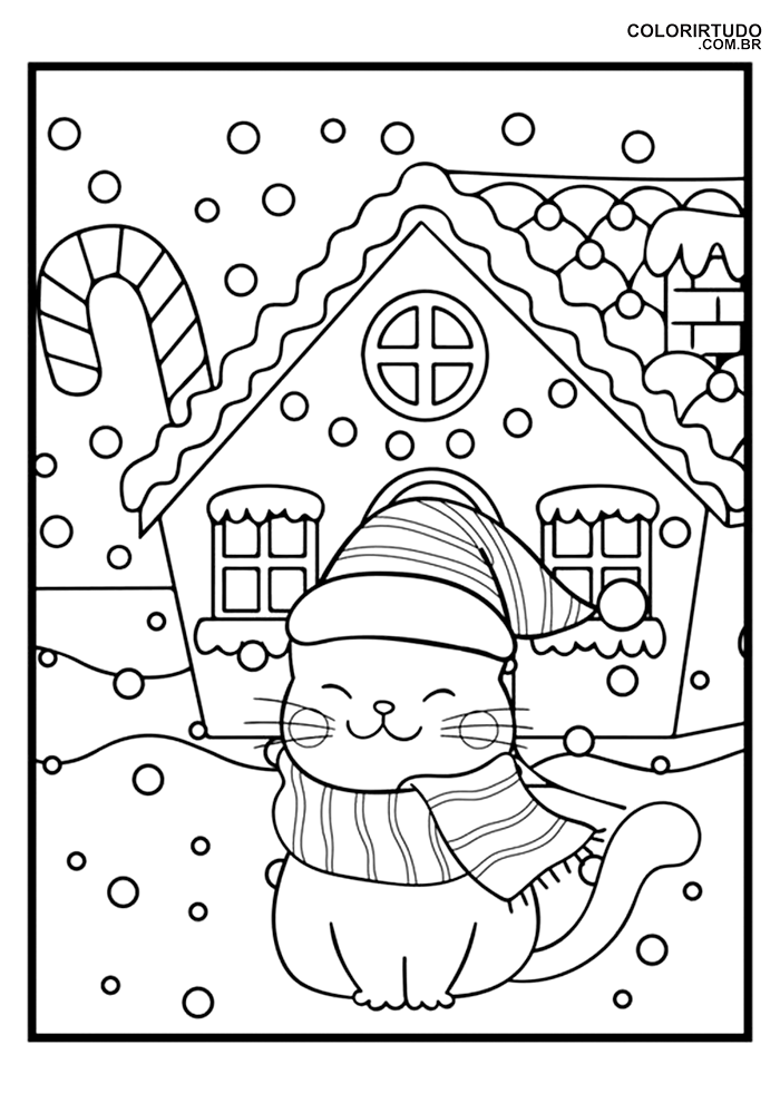 Casa - PAGINE DA COLORARE - Pagina da colorare di Natale dolce casa natale gattino inverno da stampare